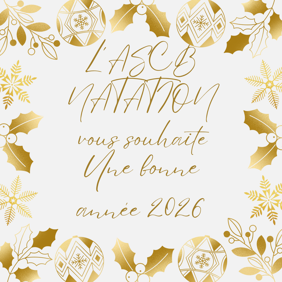 L'ASCB Natation vous souhaite une merveilleuse année 2026, remplie de santé, de joie et de succès, aussi bien dans vos projets personnels que dans vos performances sportives. 🏊♂️✨